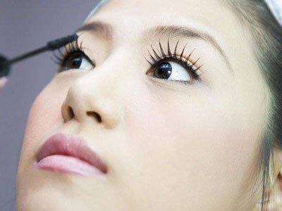 睫毛膏未干的状态下眼皮容易沾到睫毛膏,所以上方睫毛膏干掉之后,从下方涂上睫毛膏使睫毛变翘。若是不小心眼皮沾上睫毛膏,只要用棉花棒沾点乳液,轻轻擦拭就会卸掉。