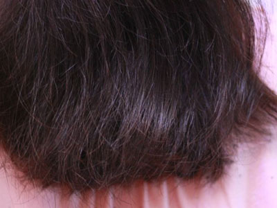 症状:头发在洗后很难顺利地通到发梢,经常会打结,梳通以后发现有许多断发,说明:头发受到了损伤。