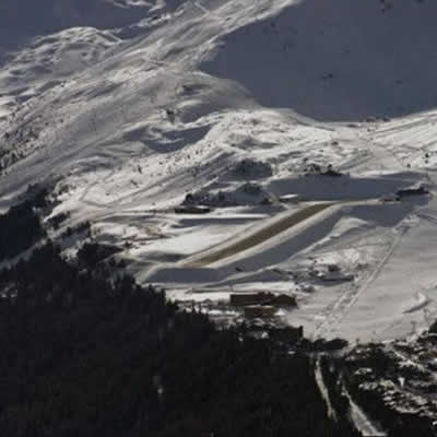 1961年启用,海拔2000米、建在滑雪跳台跑道上。高雪维尔机场位于法国阿尔卑斯山脉之中,它榜上有名的原因是其短而剧烈起伏的跑道。高雪维尔的跑道一端是一个滑雪跳台,机场在近2000米海拔上,但是跑道仅有500多米长,而且这里的斜坡陡峭程度让人难以置信,倾斜度达到18.5度。